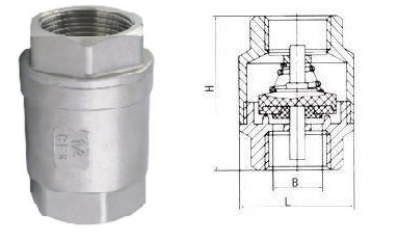 GFH12W內(nèi)螺紋立式止回閥正常處于關閉狀態(tài),由于管線中進口端介質的壓力作用,而克服彈簧阻力使閥門開啟。當進口端介質壓力低于出口端時,彈簧將閥芯推向閥座而使閥門關閉,阻止介質逆流,故起止回作用。內(nèi)螺紋立式止回閥由于采用彈簧支撐閥芯,故采用立式安裝或臥式裝均可。