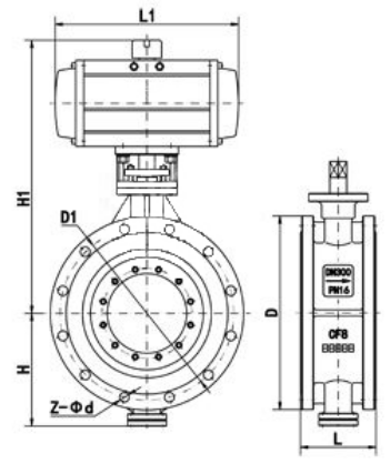 根據(jù)閥門所需力矩而定,配置執(zhí)行器型號(hào)不同,外形尺寸也不相同 |
