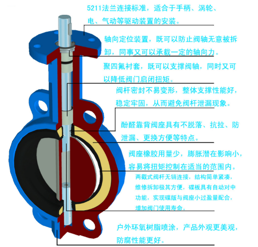 ● 90°啟閉,開關(guān)迅速。操作扭矩小,省力輕巧